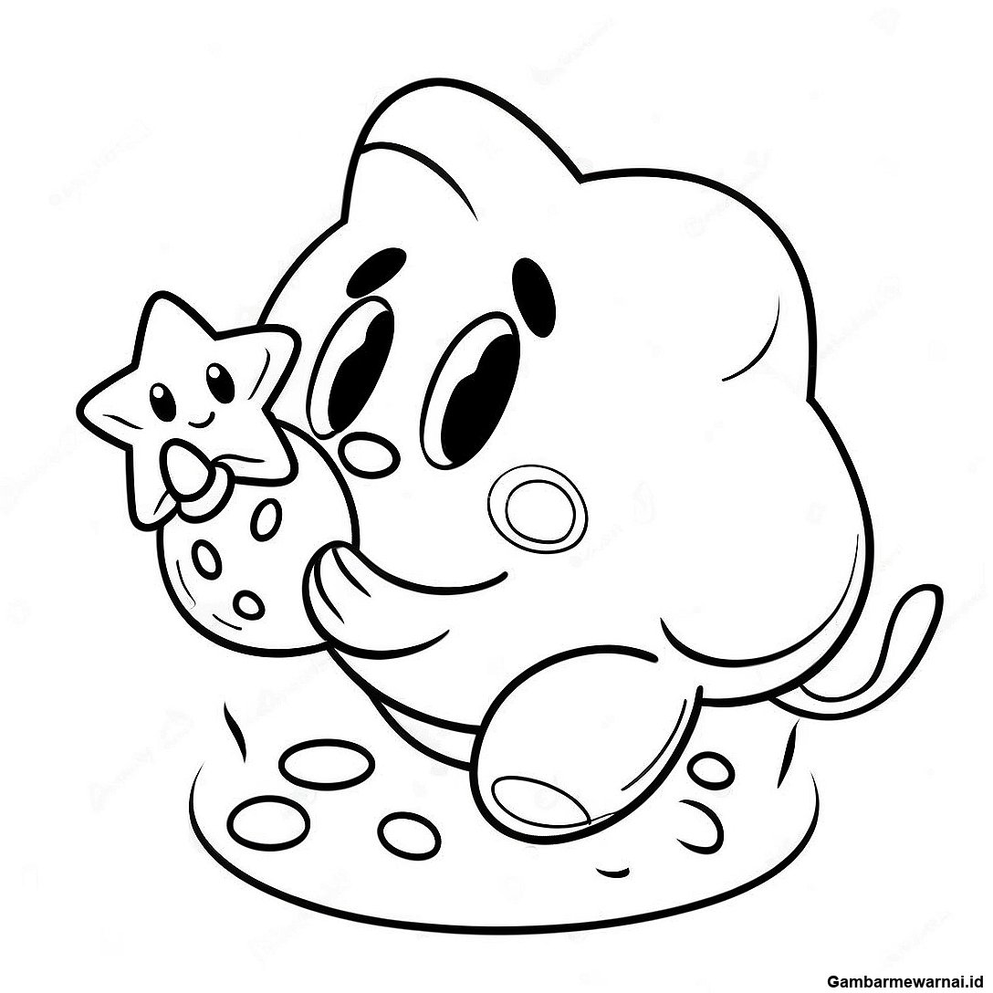 Halaman Mewarnai Kirby Makan Bintang
