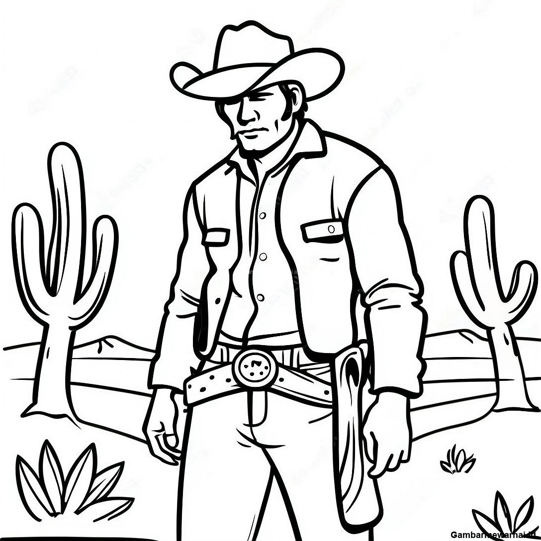 Halaman Mewarnai Koboi Kuat Di Gurun