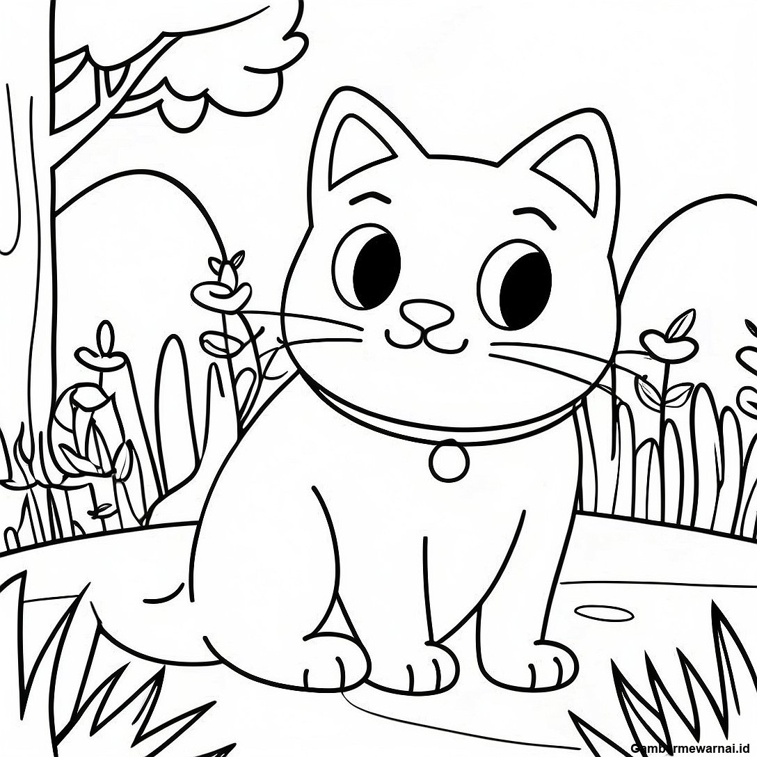 Halaman Mewarnai Kucing Alam Menjelajahi Taman Yang Cerah