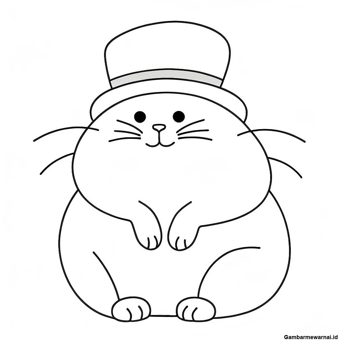 Halaman Mewarnai Kucing Gemuk Berhati Topi