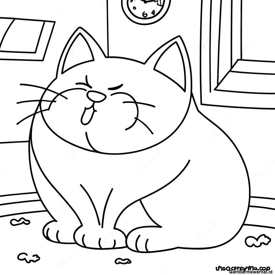 Halaman Mewarnai Kucing Gemuk Yang Mengantuk
