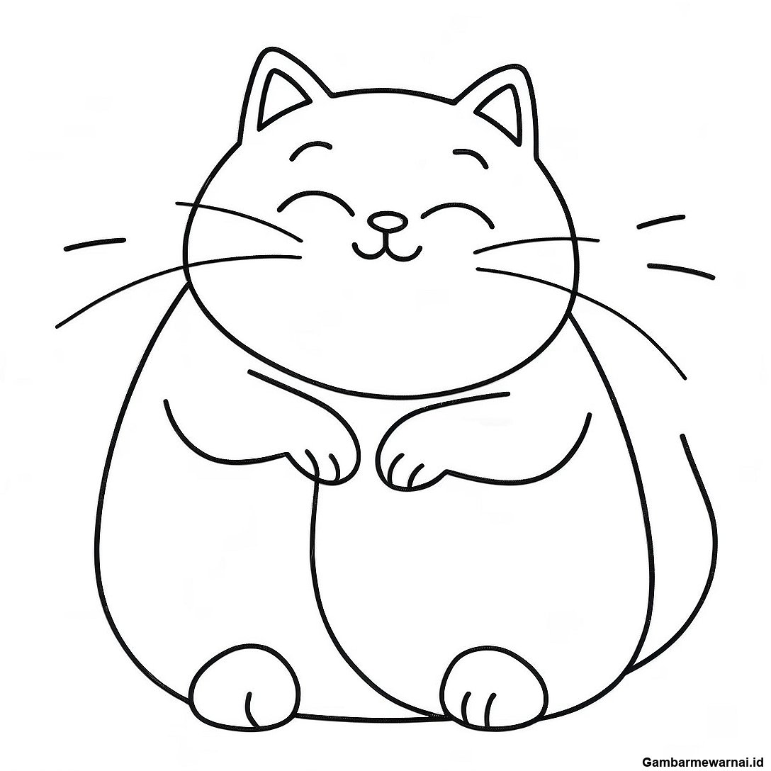 Halaman Mewarnai Kucing Gemuk Yang Mengantuk