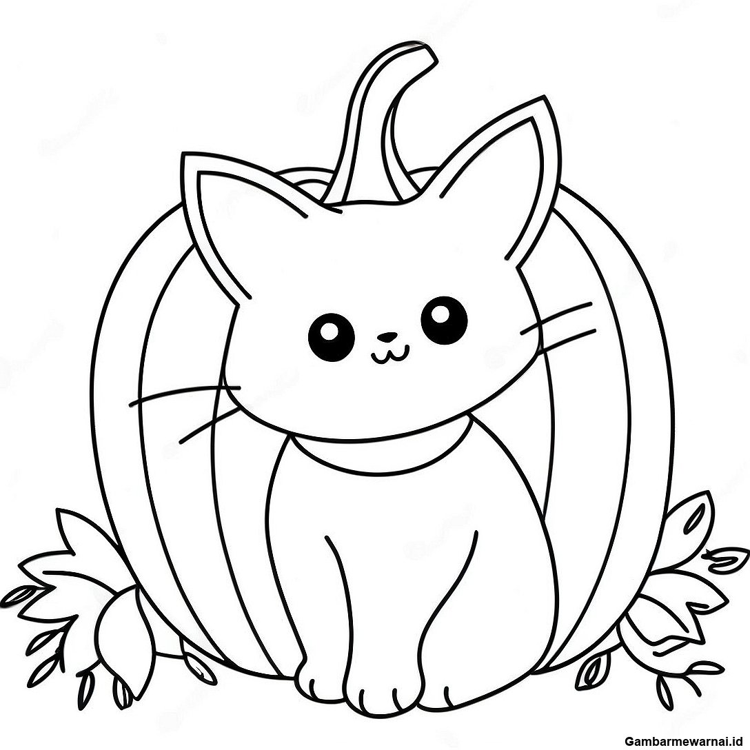 Halaman Mewarnai Kucing Labu Yang Ceria