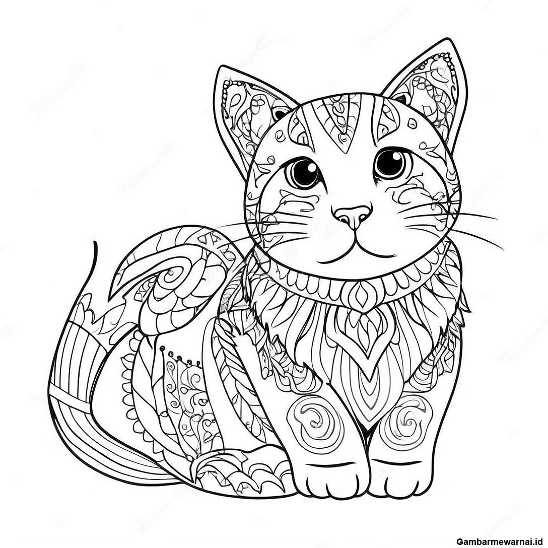 Halaman Mewarnai Kucing Kecil yang Ceria