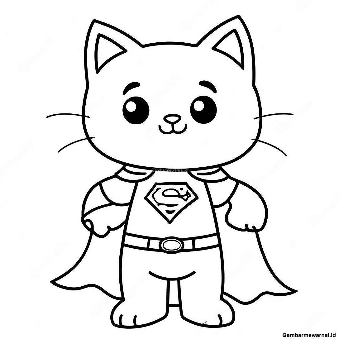 Halaman Mewarnai Kucing Super Dengan Jubah