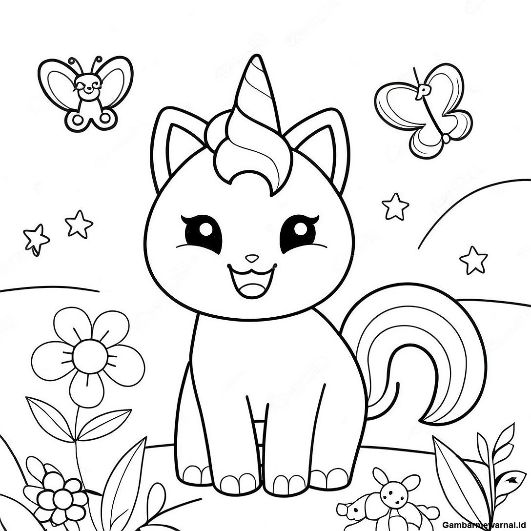 Halaman Mewarnai Kucing Unicorn Imut Dengan Bunga 11341 2457