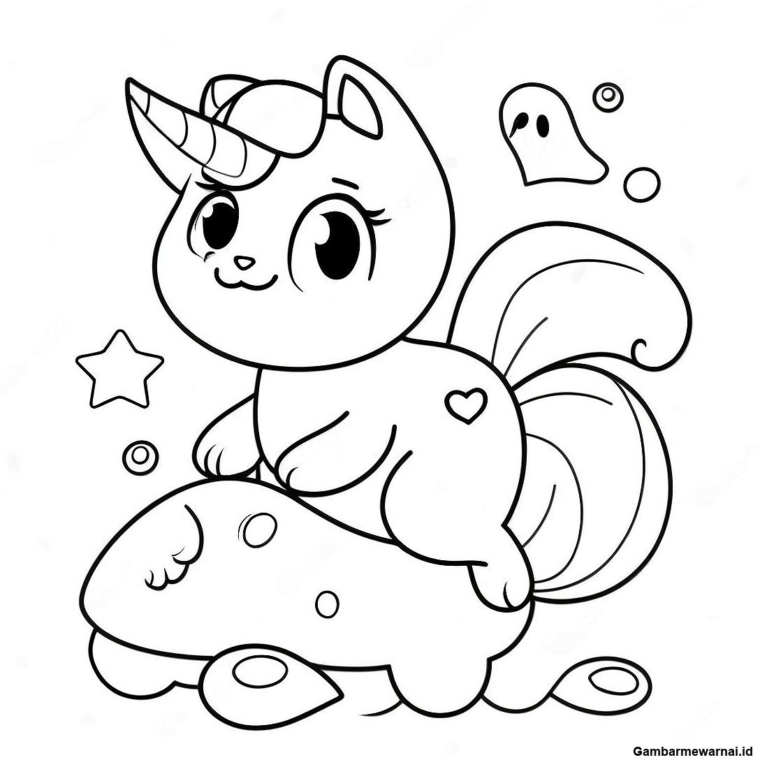 Halaman Mewarnai Kucing Unicorn Putri Duyung Ceria