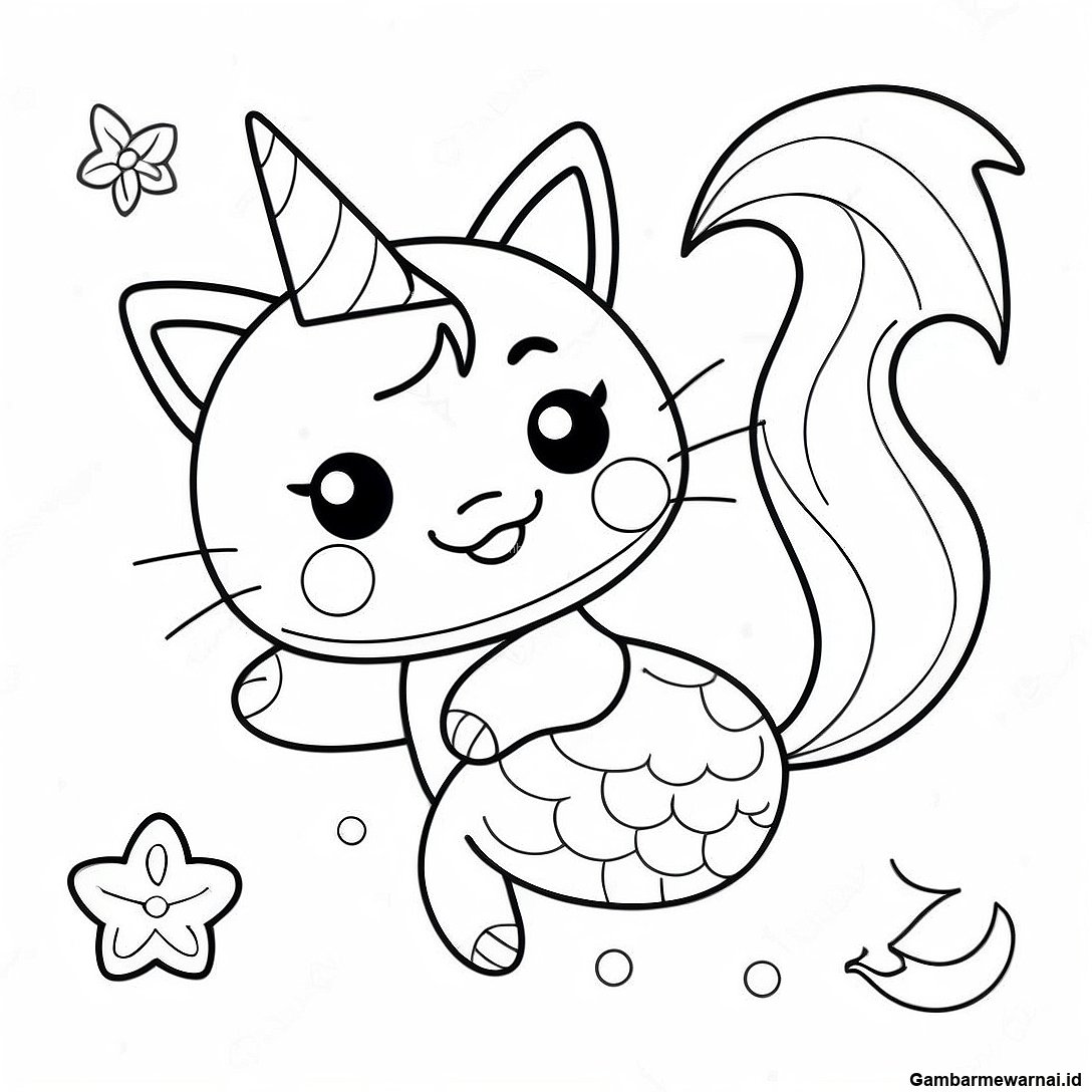 Halaman Mewarnai Kucing Unicorn Putri Duyung Lucu