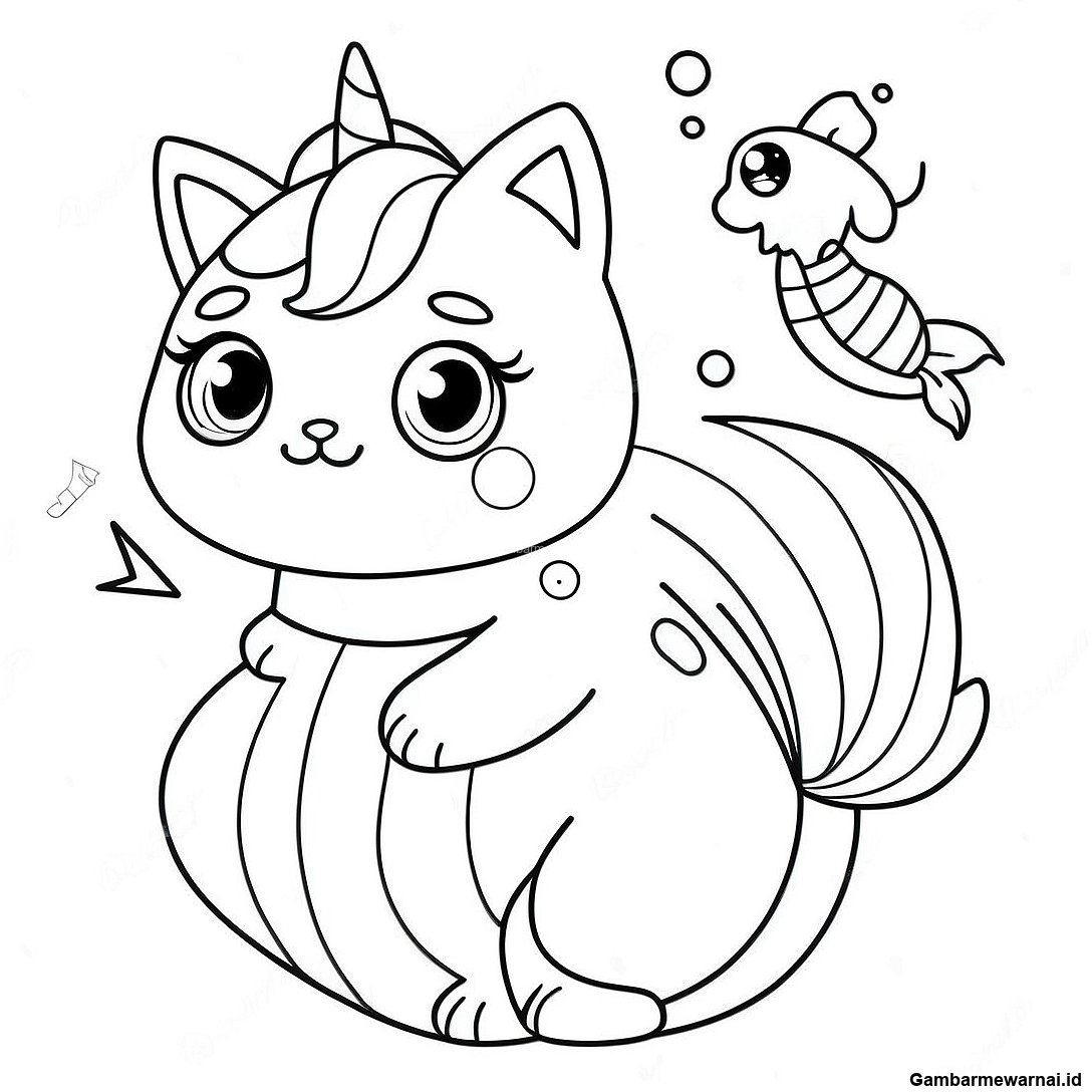 Halaman Mewarnai Kucing Unicorn Putri Duyung Lucu 106746 44055
