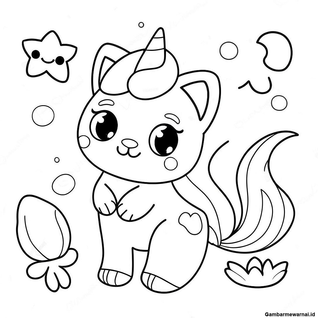 Halaman Mewarnai Kucing Unicorn Putri Duyung Lucu 106746 44056