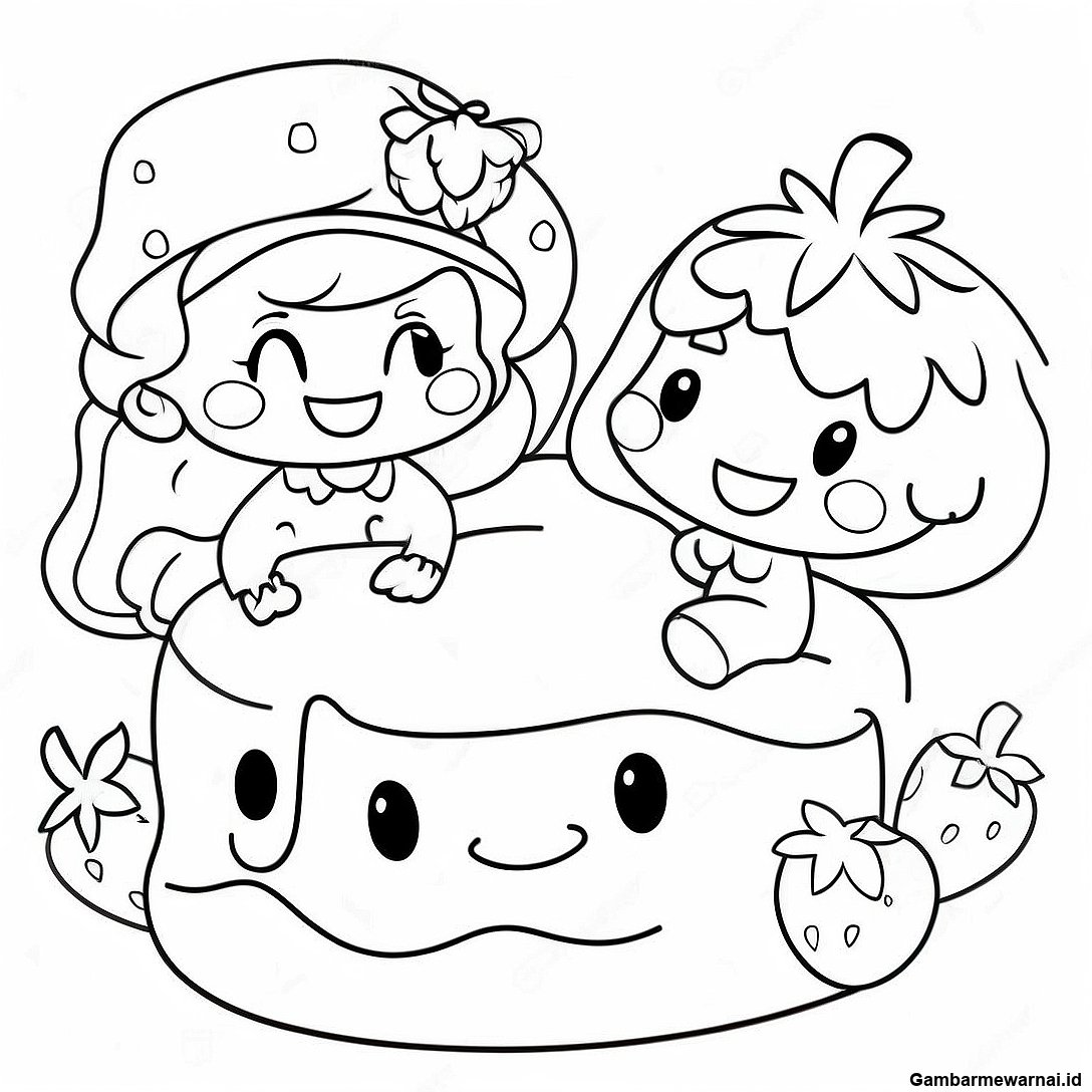Halaman Mewarnai Kue Stroberi Bahagia Dengan Teman