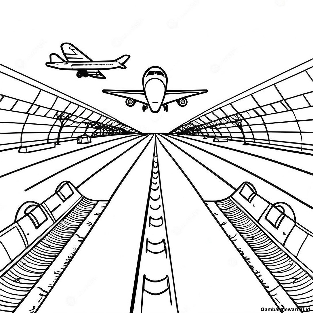 Halaman Mewarnai Landasan Pacu Bandara Berwarna