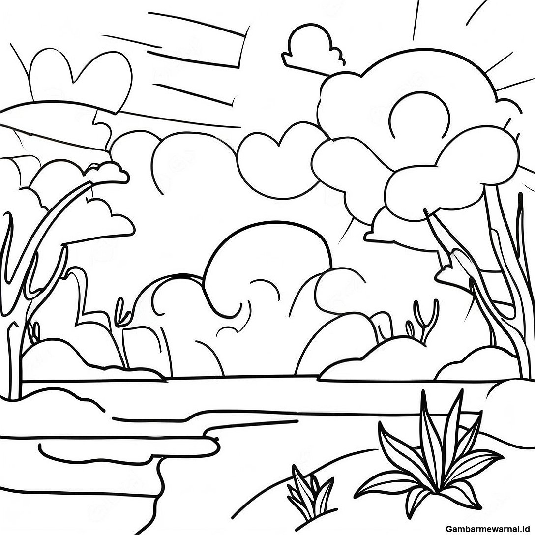 Halaman Mewarnai Langit Senja Berwarna-Warni