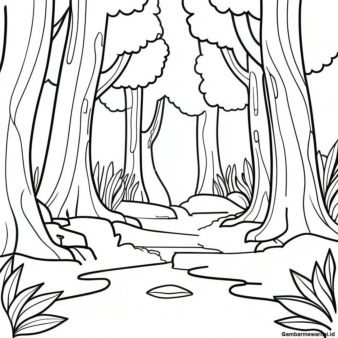 Halaman Mewarnai Lanskap Hutan Detail 85929 26771
