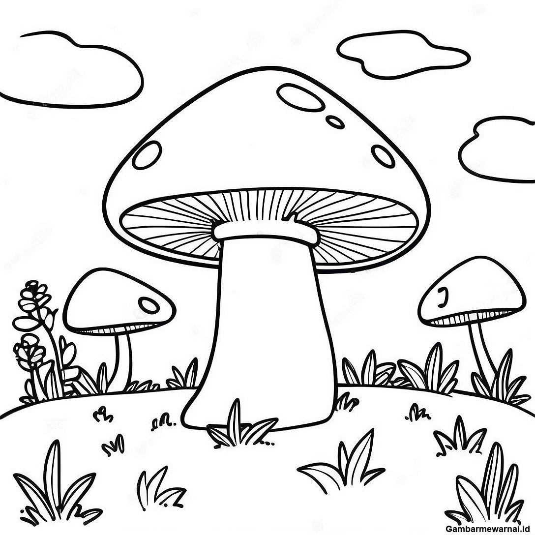 Halaman Mewarnai Lanskap Jamur Yang Groovy
