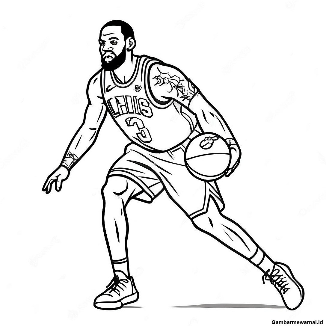 Halaman Mewarnai Lebron James Dalam Aksi
