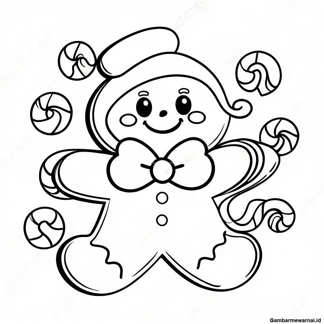 Unduh PDF yang Dapat Dicetak dari Halaman Mewarnai Manis Jahe Tersenyum Dengan Tongkat Permen