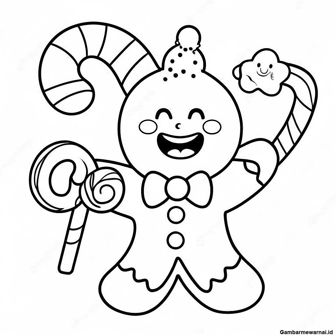 Unduh PDF yang Dapat Dicetak dari Halaman Mewarnai Manis Jahe Tersenyum Dengan Tongkat Permen