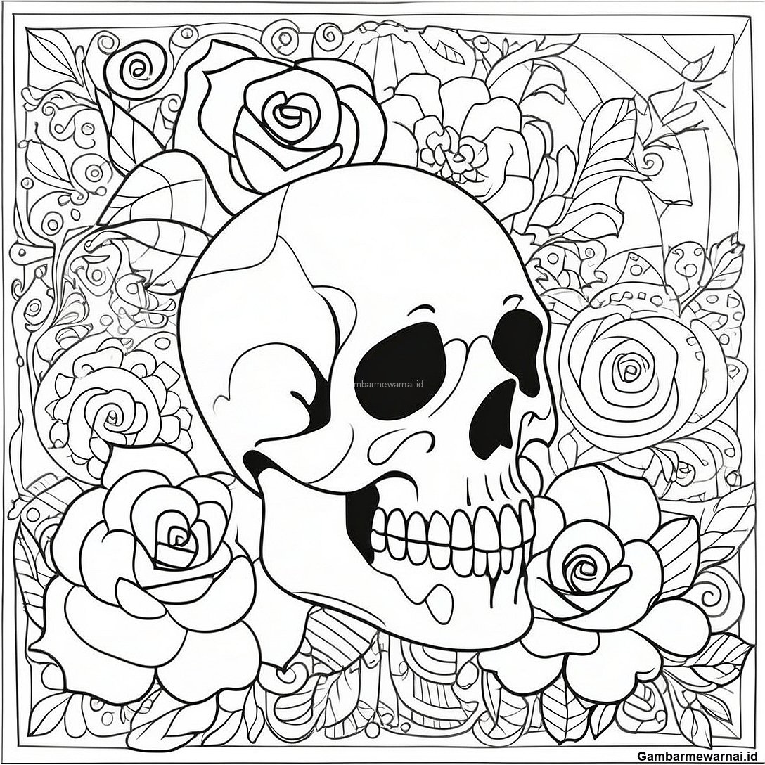 Halaman Mewarnai Mawar Dan Tengkorak Yang Rumit