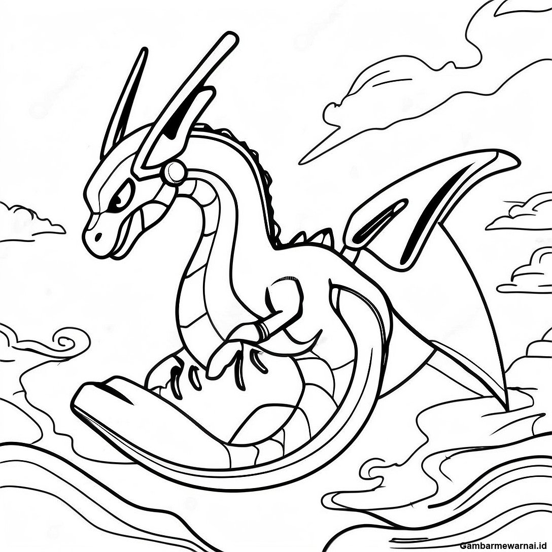 Halaman Mewarnai Mega Rayquaza Di Latar Belakang Badai