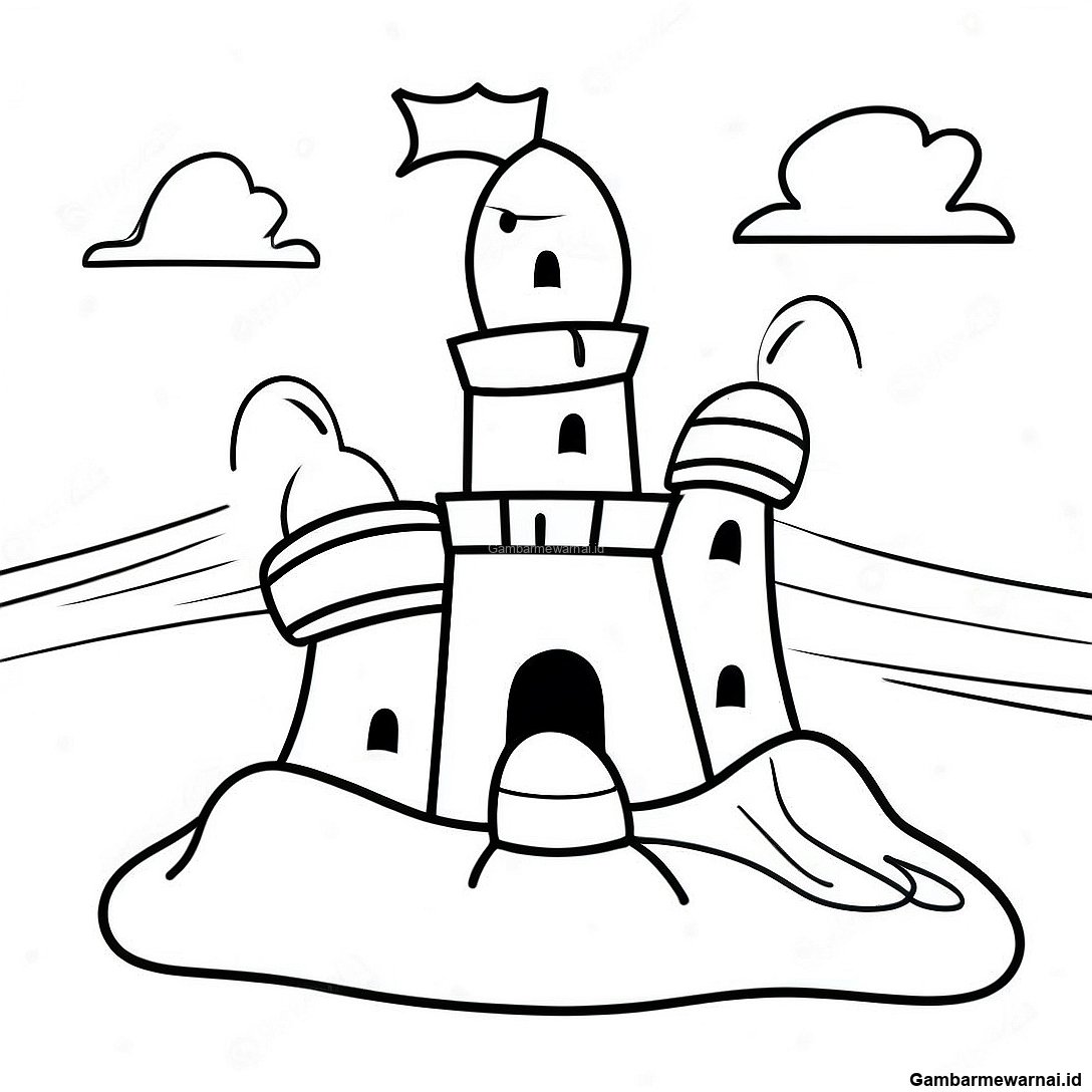 Halaman Mewarnai Membangun Istana Pasir Yang Lucu