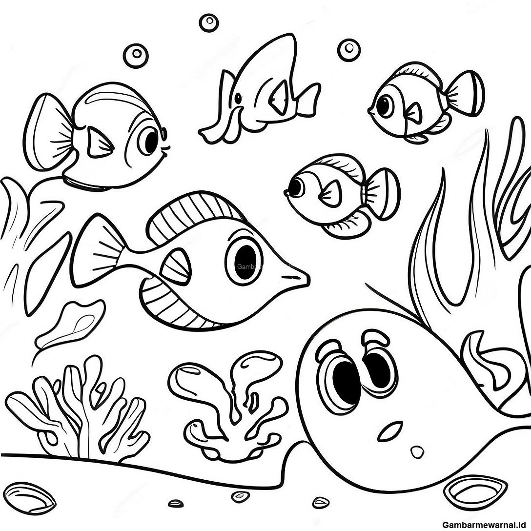 Halaman Mewarnai Menemukan Dory Di Terumbu Karang