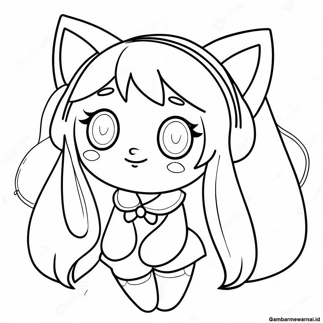 Halaman Mewarnai Miku Imut Dengan Telinga Kucing