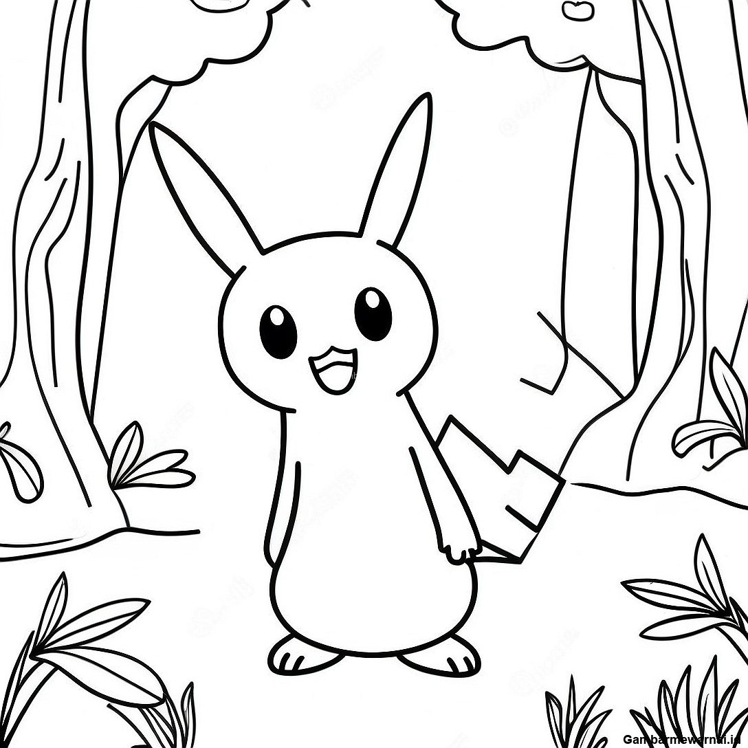 Halaman Mewarnai Pikachu di Hutan Ajaib