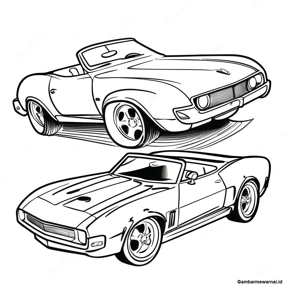 Halaman Mewarnai Mobil Convertible Hot Wheels Elegan