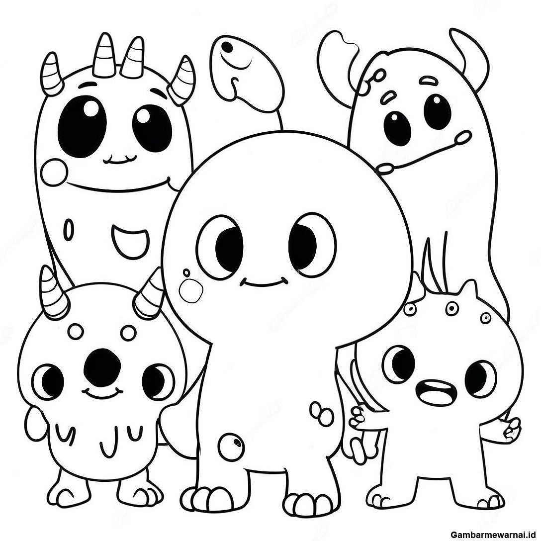 Unduh PDF yang Dapat Dicetak dari Halaman Mewarnai Monster Kartun Imut