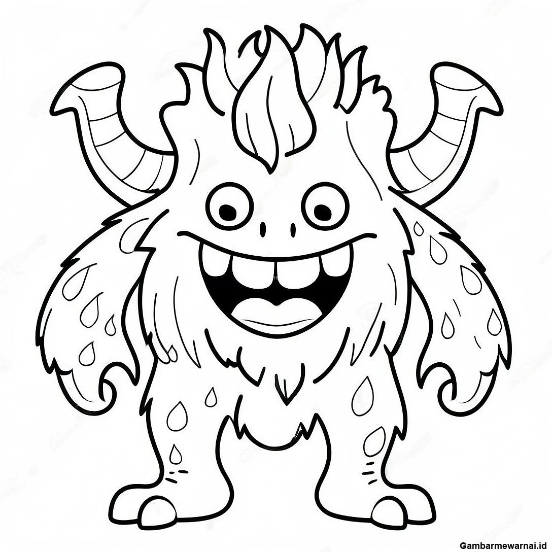 Halaman Mewarnai Monster Lucu Dengan Rambut Konyol 15436 3378