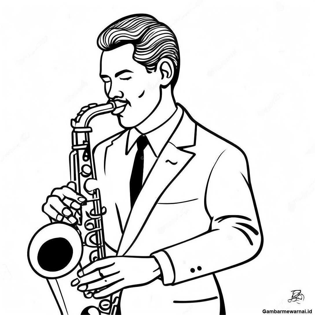 Halaman Mewarnai Musisi Jazz Memainkan Saksofon