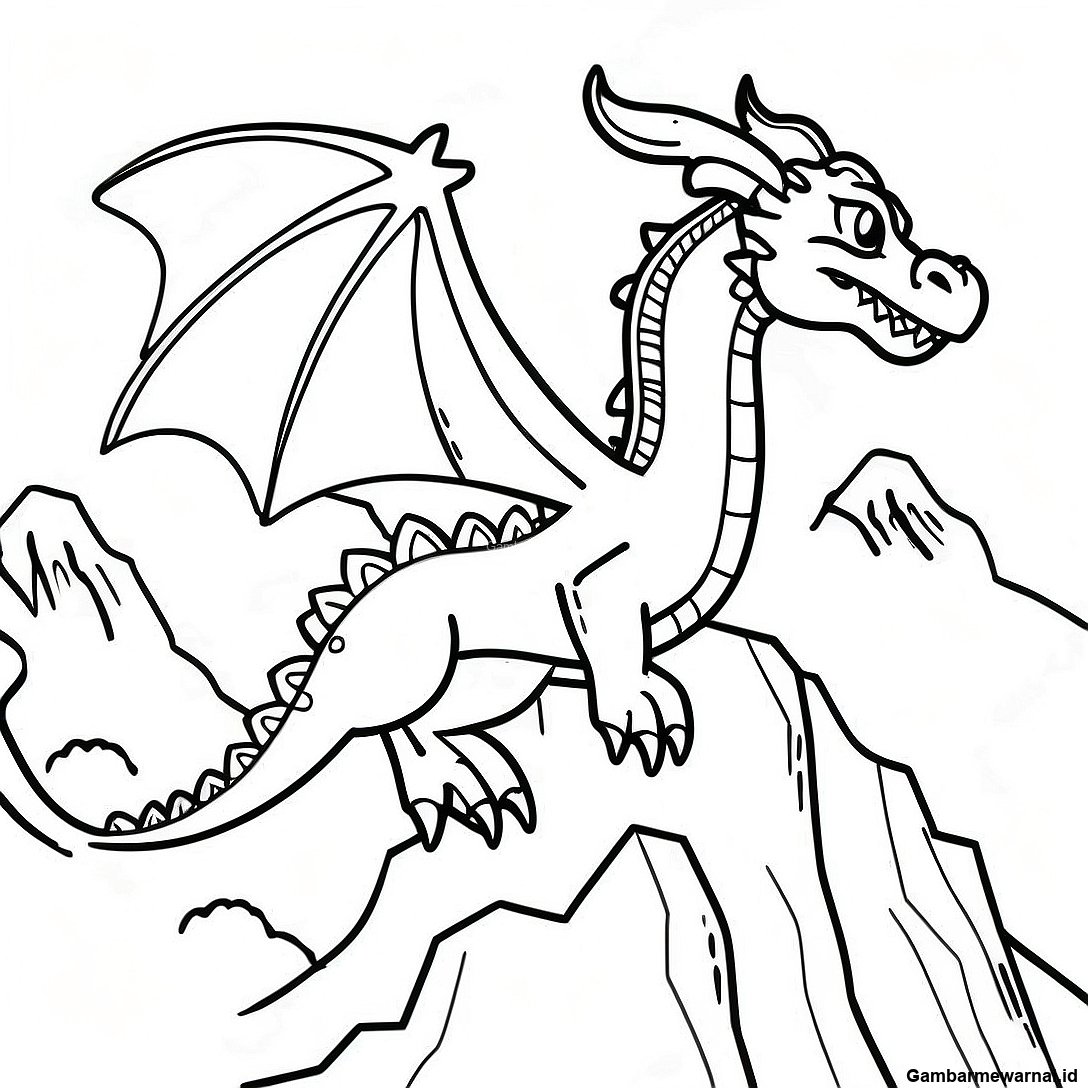 Halaman Mewarnai Naga Megah Terbang Di Atas Gunung