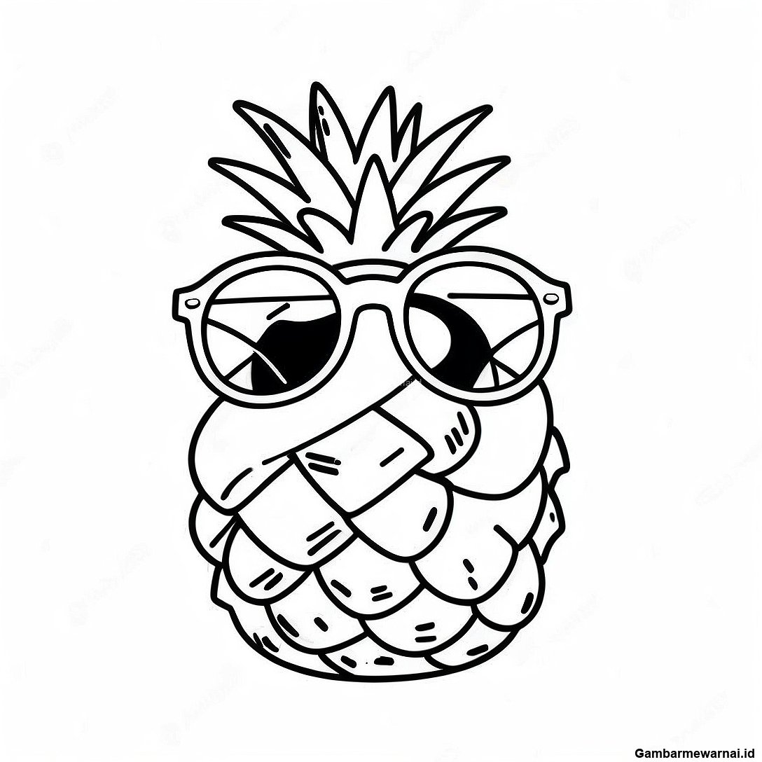Halaman Mewarnai Nanas Bahagia Dengan Kacamata
