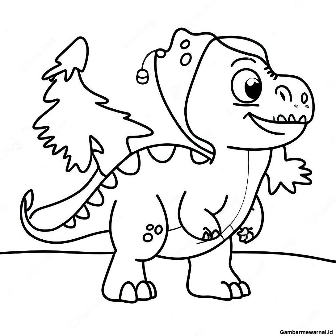 Unduh PDF yang Dapat Dicetak dari Halaman Mewarnai Natal Dinosaurus