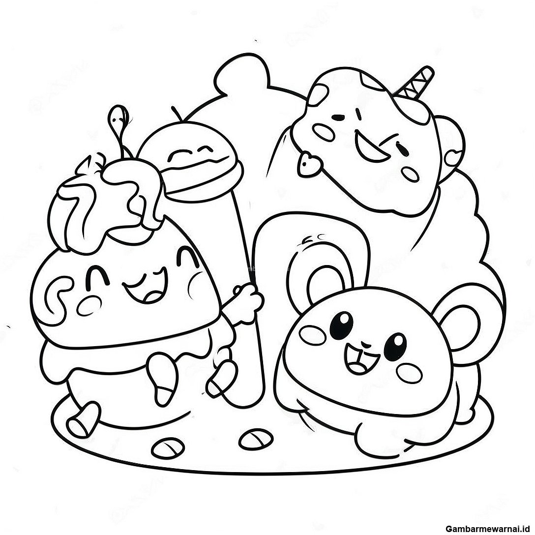 Halaman Mewarnai Num Noms Bahagia Bermain Bersama 87391 27916
