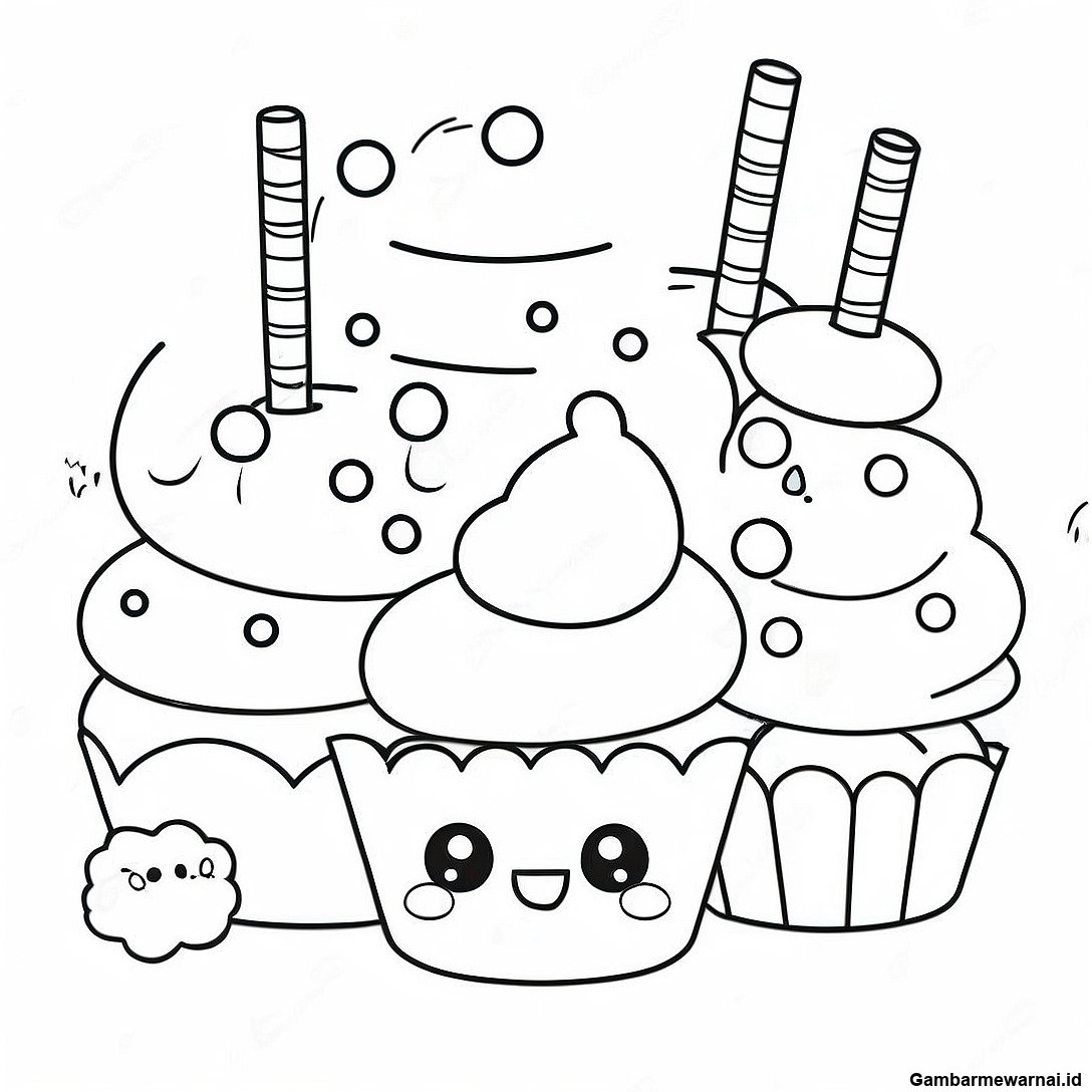 Halaman Mewarnai Num Noms Yang Imut Dengan Cupcake 87390 27911