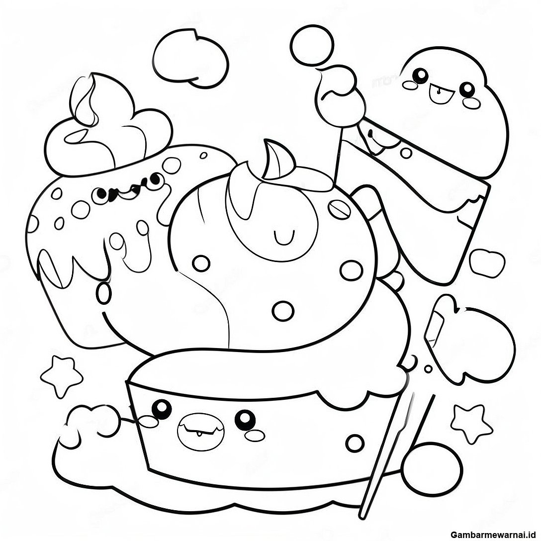 Halaman Mewarnai Num Noms Yang Imut Dengan Cupcake