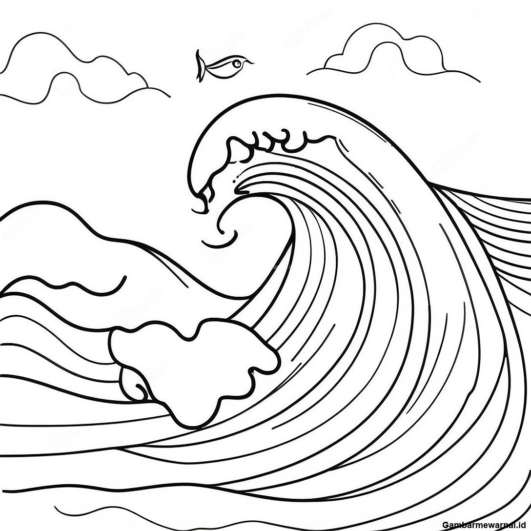 Halaman Mewarnai Ombak Laut Yang Tenang