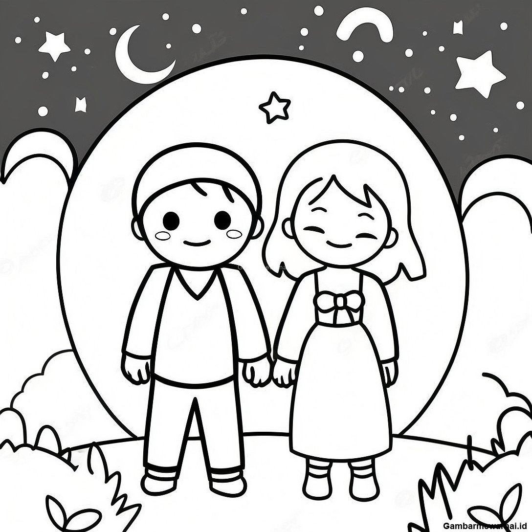 Halaman Mewarnai Pasangan Anime Menggemaskan Di Bawah Bintang