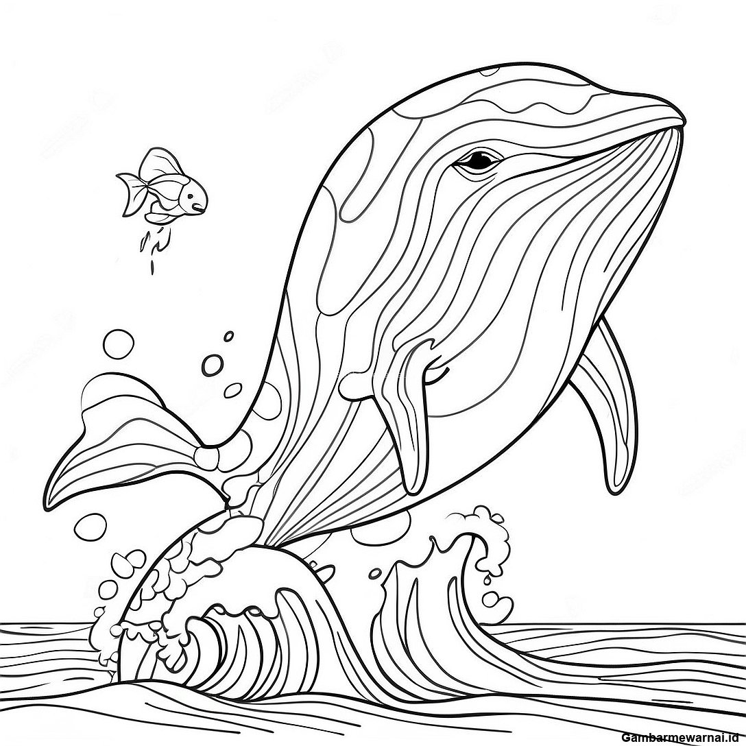 Halaman Mewarnai Paus Biru Yang Ceria Melompat