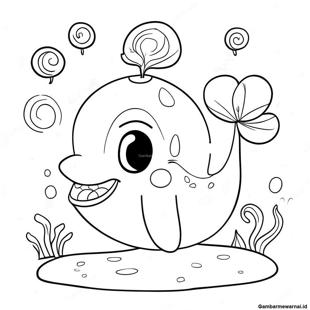 Halaman Mewarnai Paus Kartun Yang Menggemaskan