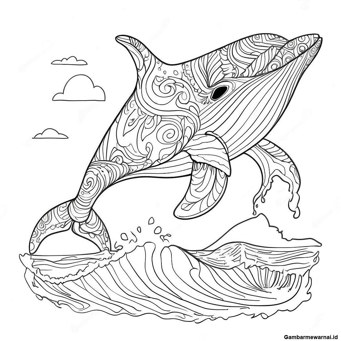 Halaman Mewarnai Paus Megah Melompat