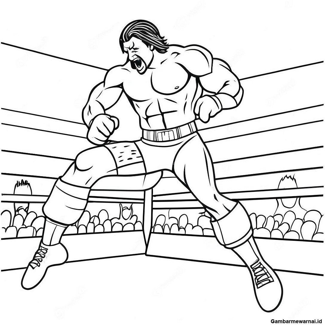 Unduh PDF yang Dapat Dicetak dari Halaman Mewarnai Pegulat Wwe Melompat Di Atas Lawan