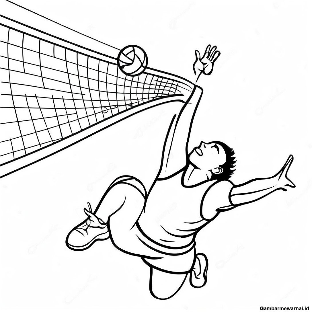 Halaman Mewarnai Pemain Bola Voli Melompat Untuk Menyundul