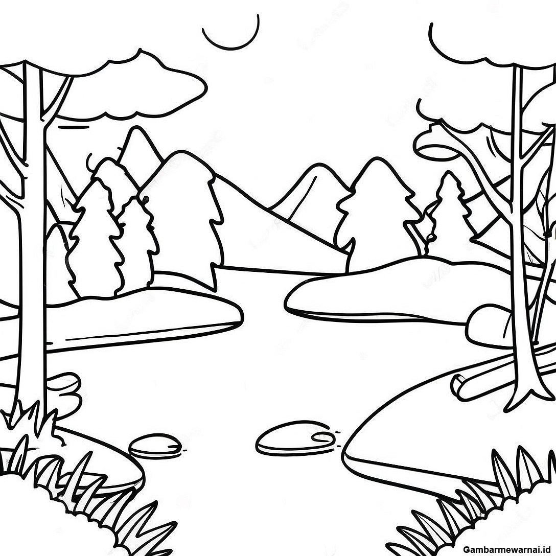 Halaman Mewarnai Pemandangan Aplikasi Danau Yang Tenang