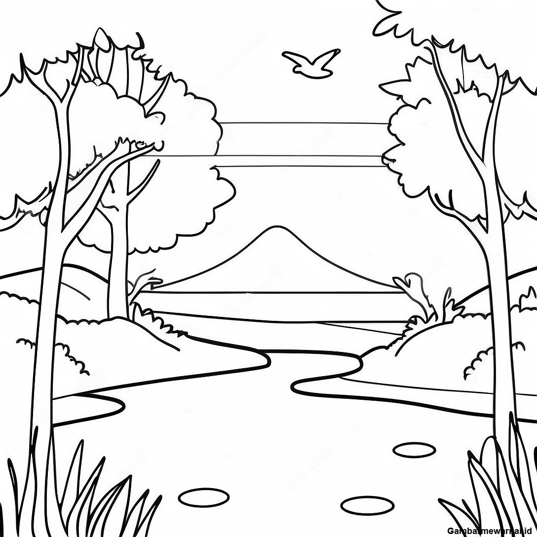 Gambar Mewarnai Taman Musim Semi yang Cerah