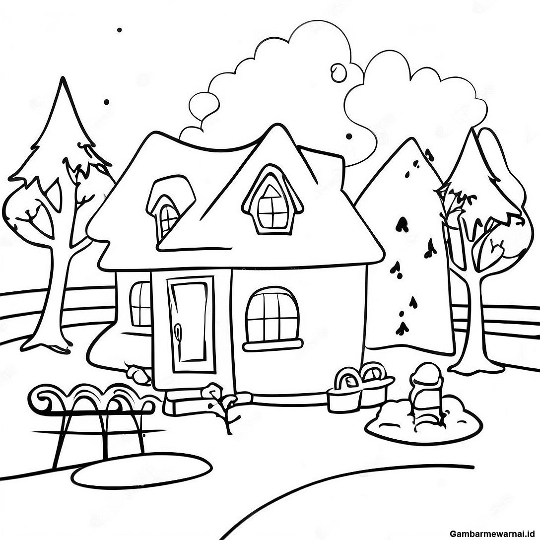 Halaman Mewarnai Pemandangan Musim Dingin Yang Nyaman
