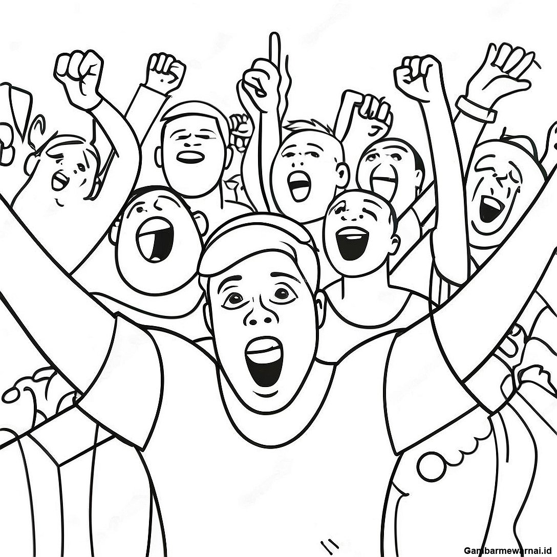 Halaman Mewarnai Penggemar Sepak Bola Bersorak