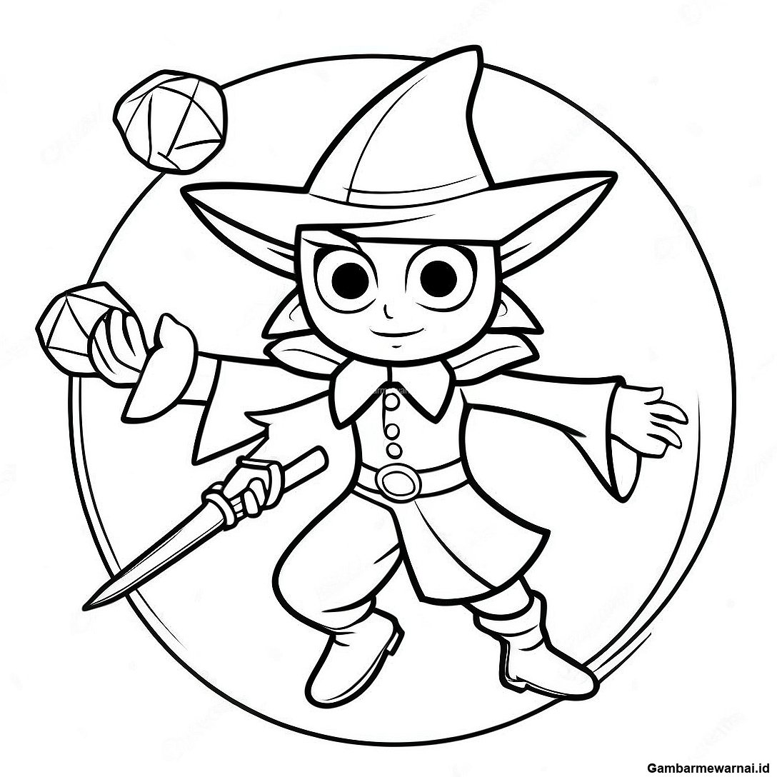 Halaman Mewarnai Penyihir Gelap Dalam Aksi